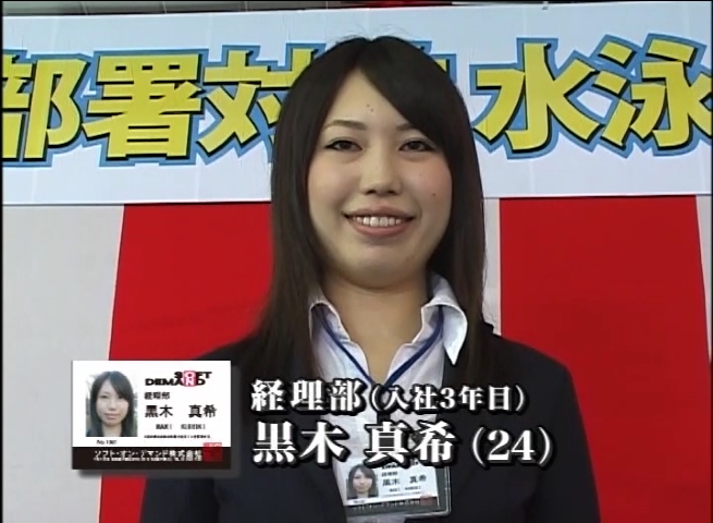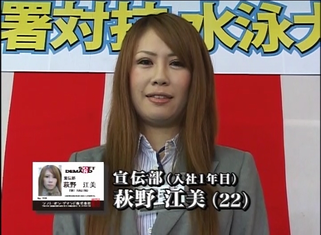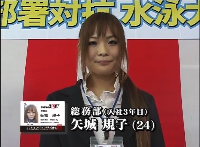 今年は水泳大会を春にも開催!!濡れたスーツが絡みつき、透けるパンティに頬を赤らめ戸惑う女子社員達!!ユーザー様をお招きしてのHな水中ゲームは大盛り上がり!!さらに、毎年入社してくる社員の中、キラリと光る逸材を発見!!平成21年度入社予定の制作部配属希望の平岡ゆいちゃん!!男慣れしてないその仕草に面接官のチ○ポビンビン!!勤務態度ノーパン調査も加わって今年の春の赤面祭は超豪華!!